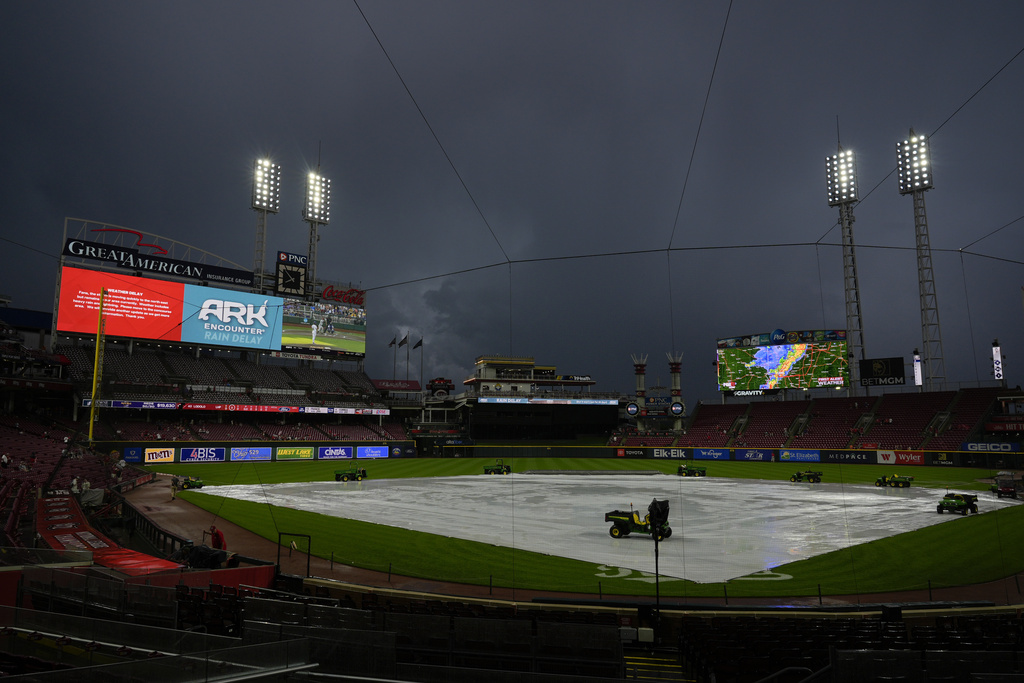 The start was delayed two hours and seven minutes by severe weather. With two outs in the bottom of the sixth, rain returned and the game was called after a 53-minute delay.